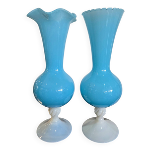 Vase, soliflore en opaline bleue et blanche