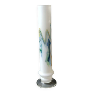 Vase soliflore tubulaire. En cristal taillé. A décor de motifs feuillus dépolis. Stylé Boho-Chic. Haut 20 cm