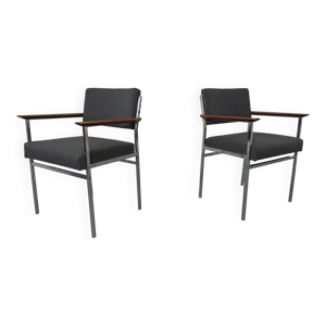 Vintage armchairs set of 2 beige bouclé walnut wood 1960