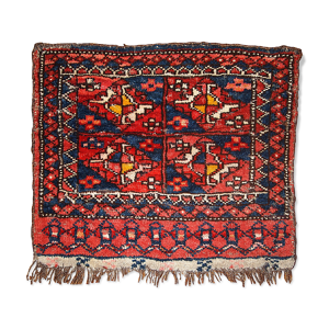 Vintage carpet uzbek bukhara handmade 46cm x 56cm 1950s, 1c765