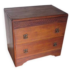 Vintage-commode 3 tioirs -bois bambou et rotin tressé - années 80