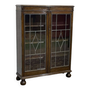 Vitrine anglaise en bois ancien - Pieds galbés & 3 étagères