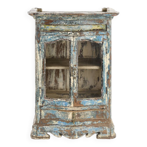 Vitrine murale en bois massif à patine blanche