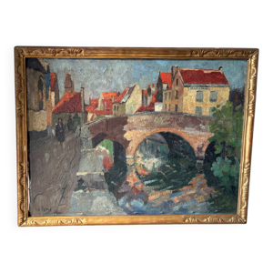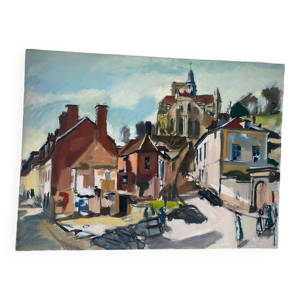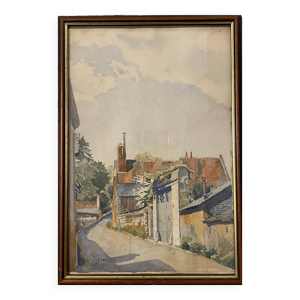 Vue de village signé Cousin de 1945