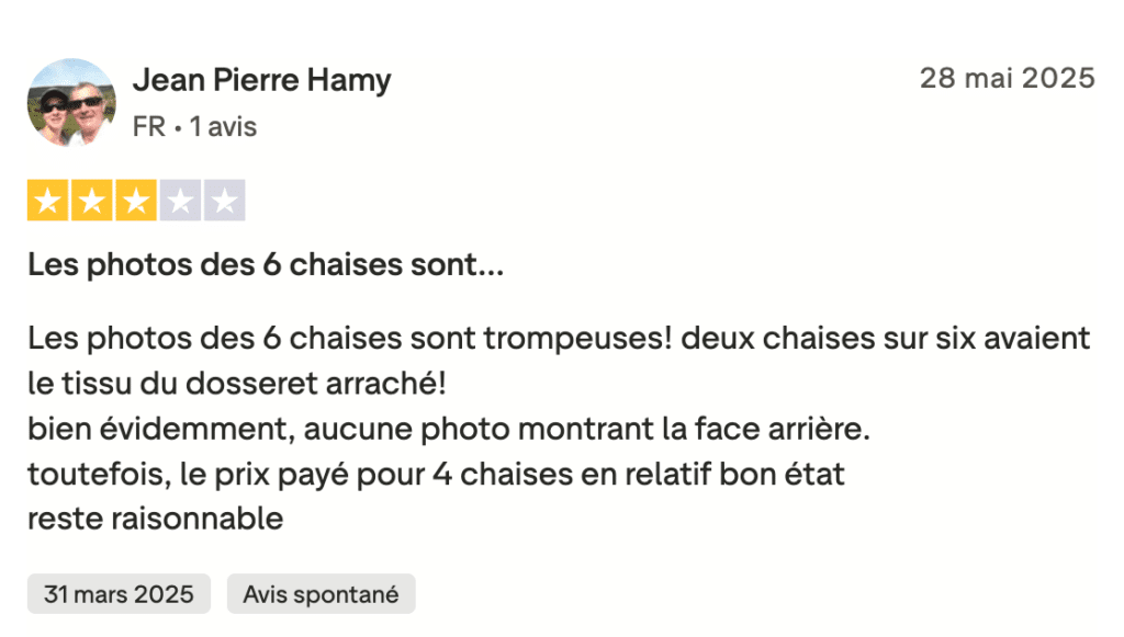 - Descriptions parfois ambiguës : confusion possible entre vintage et contemporain, défauts pas toujours visibles en photo → frustration chez les acheteurs exigeants.