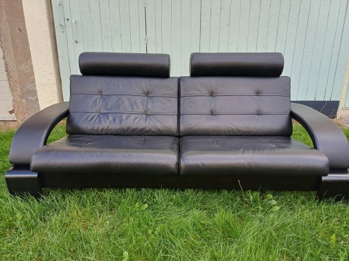 4coussins de dos Kenzo plume et fibre.Assise100% plume .Piétement en hêtre massif teinté wenge.Très bon état.Longueur 2 mètres,profondeur 92cms,hauteur assise 40 cms .Couleur rouge.Fauteuil assorti également en très bon état.