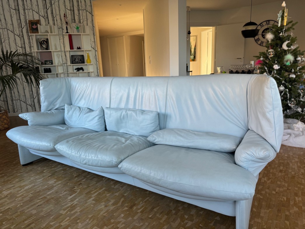 Canapé cassina 3 places cuir bleu clair très bon état 1000 euros