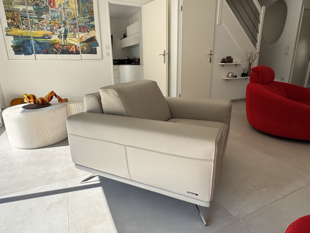Ensemble PRÉSENCE canapé 3 places, cuir, couleur gris sweet, excellent état.